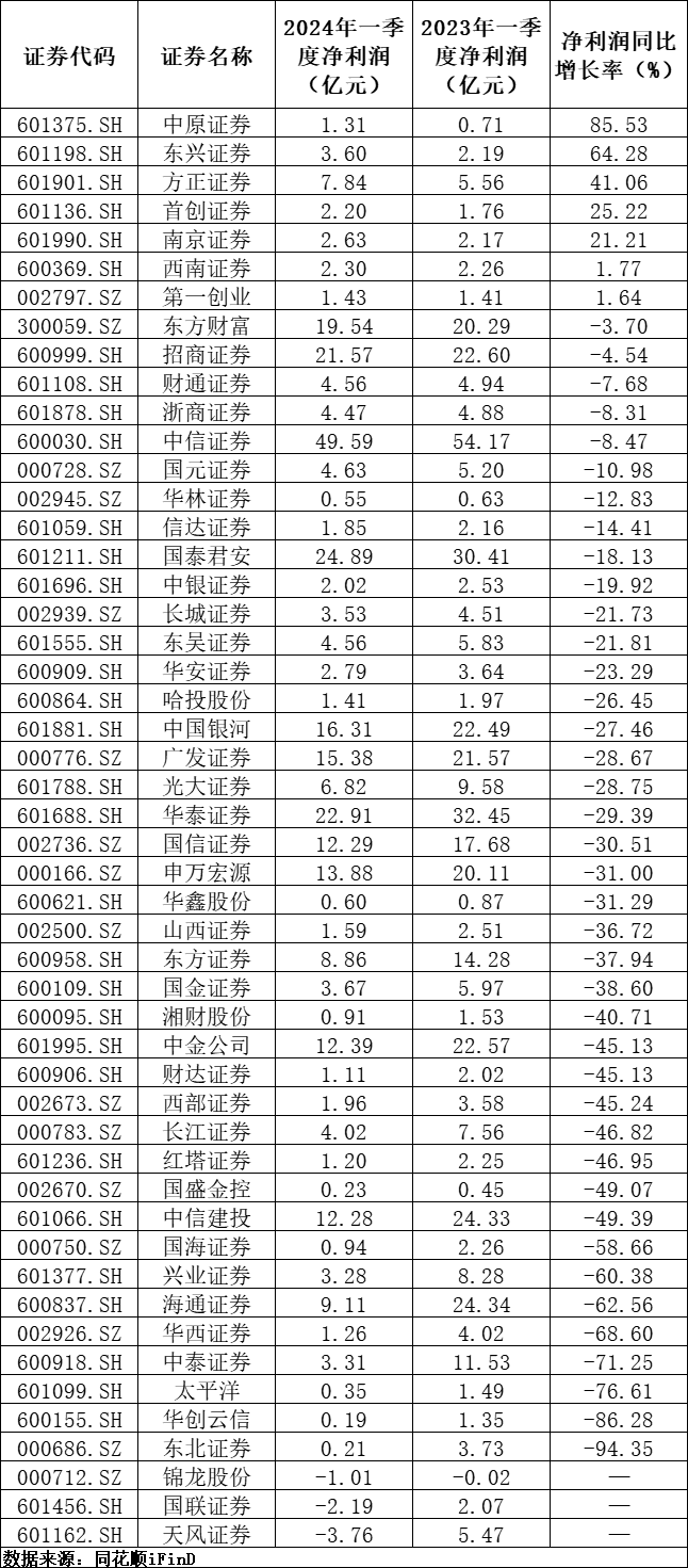 券商一季报扫描:43家业绩同比下滑或亏损,天风证券、国联证券、锦龙股份亏损上亿元