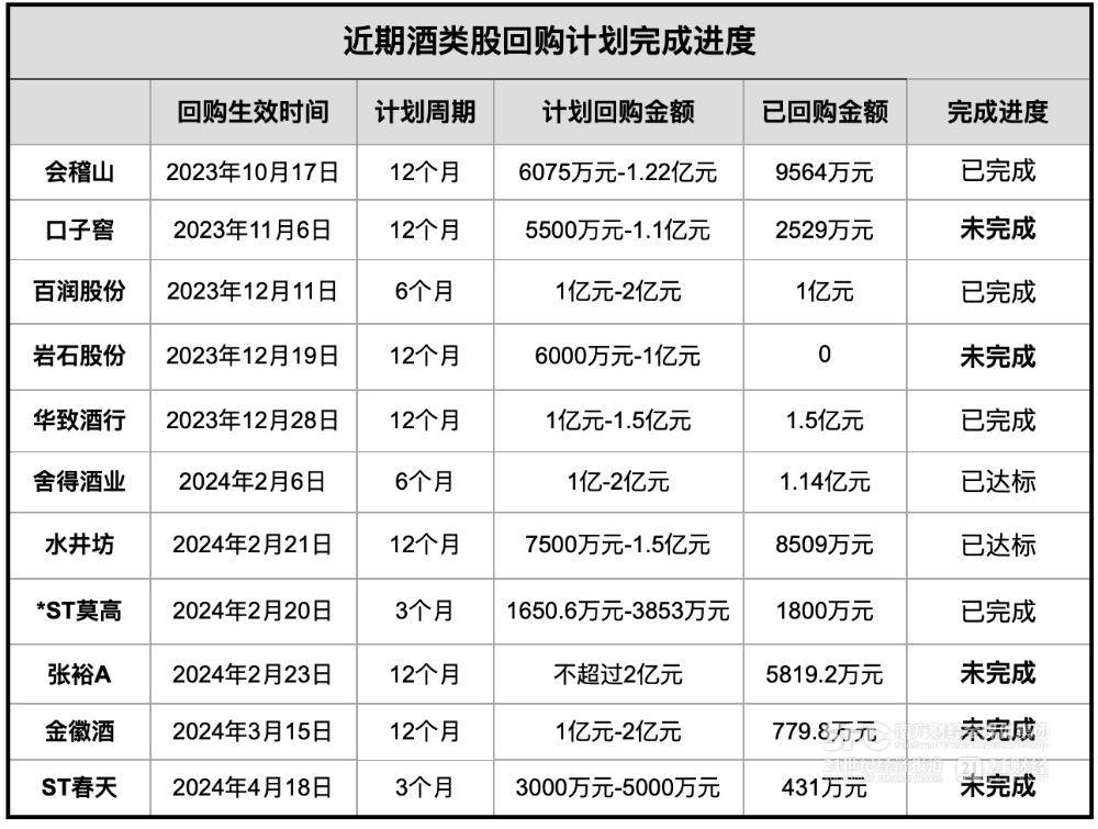 上市酒企回购增持进度考:超半数出资额已达标,也有酒企一股未买