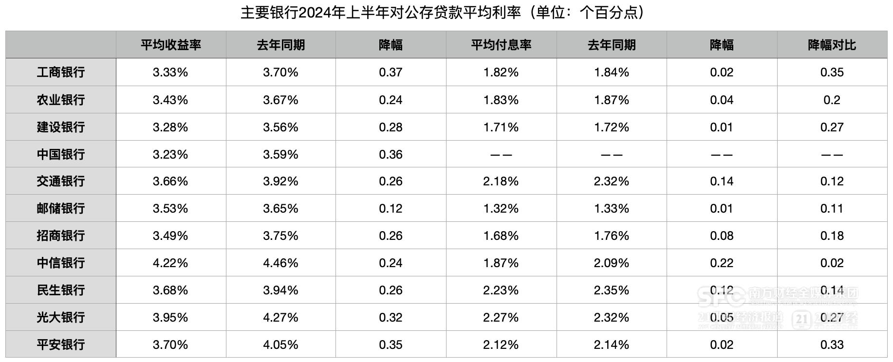 分析来看,对公业务中的利息净收入减少与对公贷款平均收益率下降有关,数据显示,上半年上述11家银行均有不同程度的下降,其中工商银行、中国银行、平安银行、光大银行降幅相对较大,超过0.3个百分点。