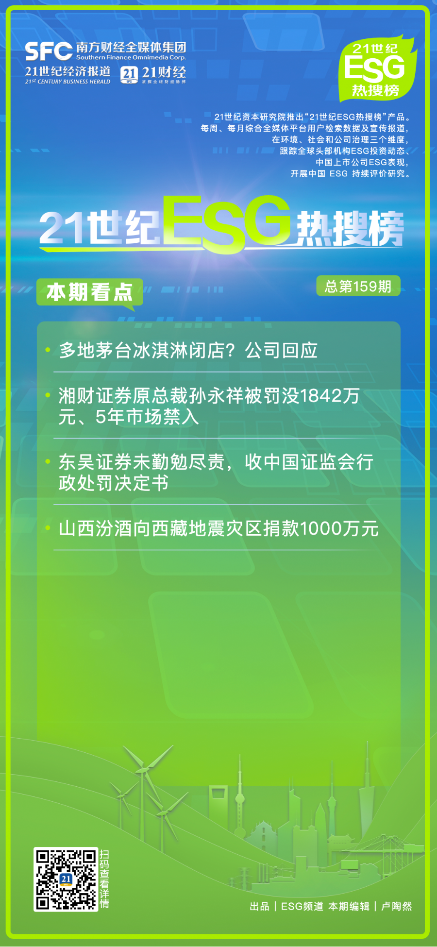 21世纪ESG热搜榜(第159期)丨多地茅台冰淇淋闭店?公司回应;山西汾酒向西藏地震灾区捐款1000万元
