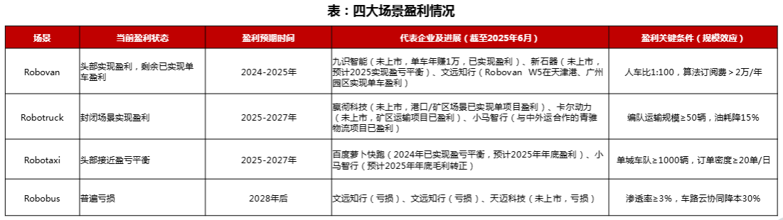 公开资料显示,L4四大场景包括Robotaxi(自动驾驶出租车)、Robovan(无人物流/末端配送)、Robotruck(自动驾驶卡车)、Robobus(无人汽车)。四大场景中,Robotaxi因技术门槛高、替代刚需市场(出行)空间最大,是最值得关注的市场。