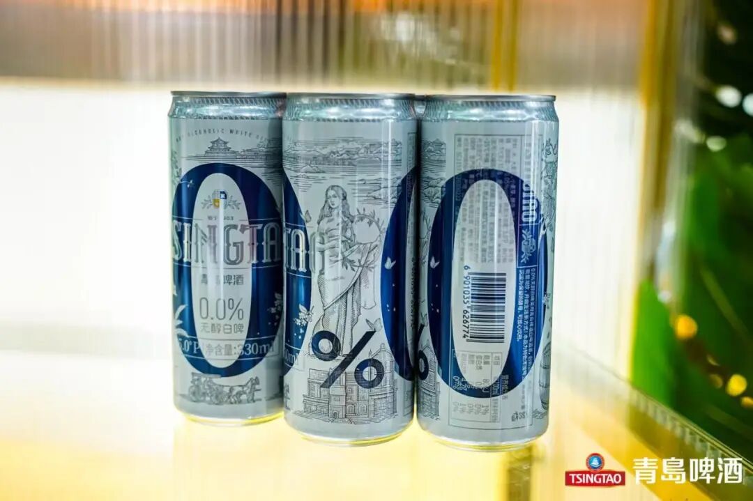 还有青岛啤酒0.0%无醇白啤,斩获2025啤酒世界杯金奖的,采用先进的真空蒸馏脱醇技术和,酒感调控技术,保持啤酒原有风味和口感的同时,酒体中酒精含量降低至<0.05%,入口顺滑,丰满细腻,浓醇的麦芽香甜中,伴有馥郁的花果香气,无醇随心畅享欢聚。