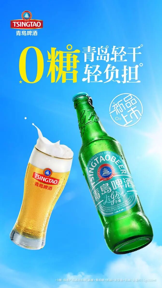 0糖低卡的青岛啤酒轻干,秉承传统酿造工艺,采用多种酒花复配,口感干净清爽,特殊的发酵技术赋予其清新果香与轻盈口感,每100ml酒液热量仅为29千卡,含糖量低至0.1g,身心轻负担体验更畅快。