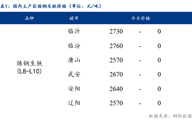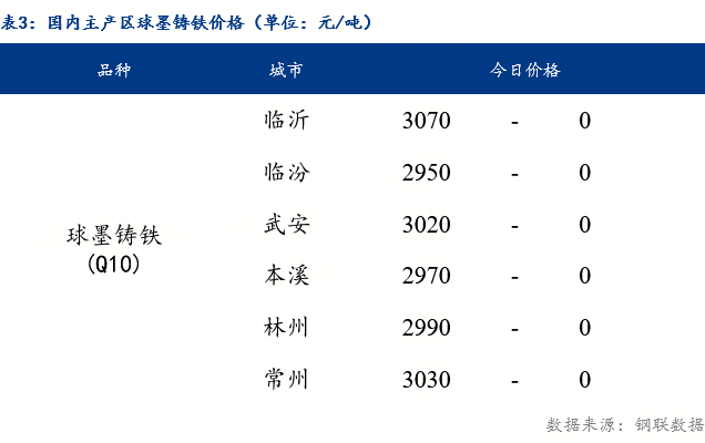 22日全国生铁价格持稳观望,成交一般。其中10城炼钢生铁L8-L10均价2624元/吨,较上一交易日价格持稳;10城铸造生铁Z18均价2986元/吨,较上一交易日价格持稳;8城球墨铸铁Q10均价3001元/吨,较上一交易日价格上调7元/吨。