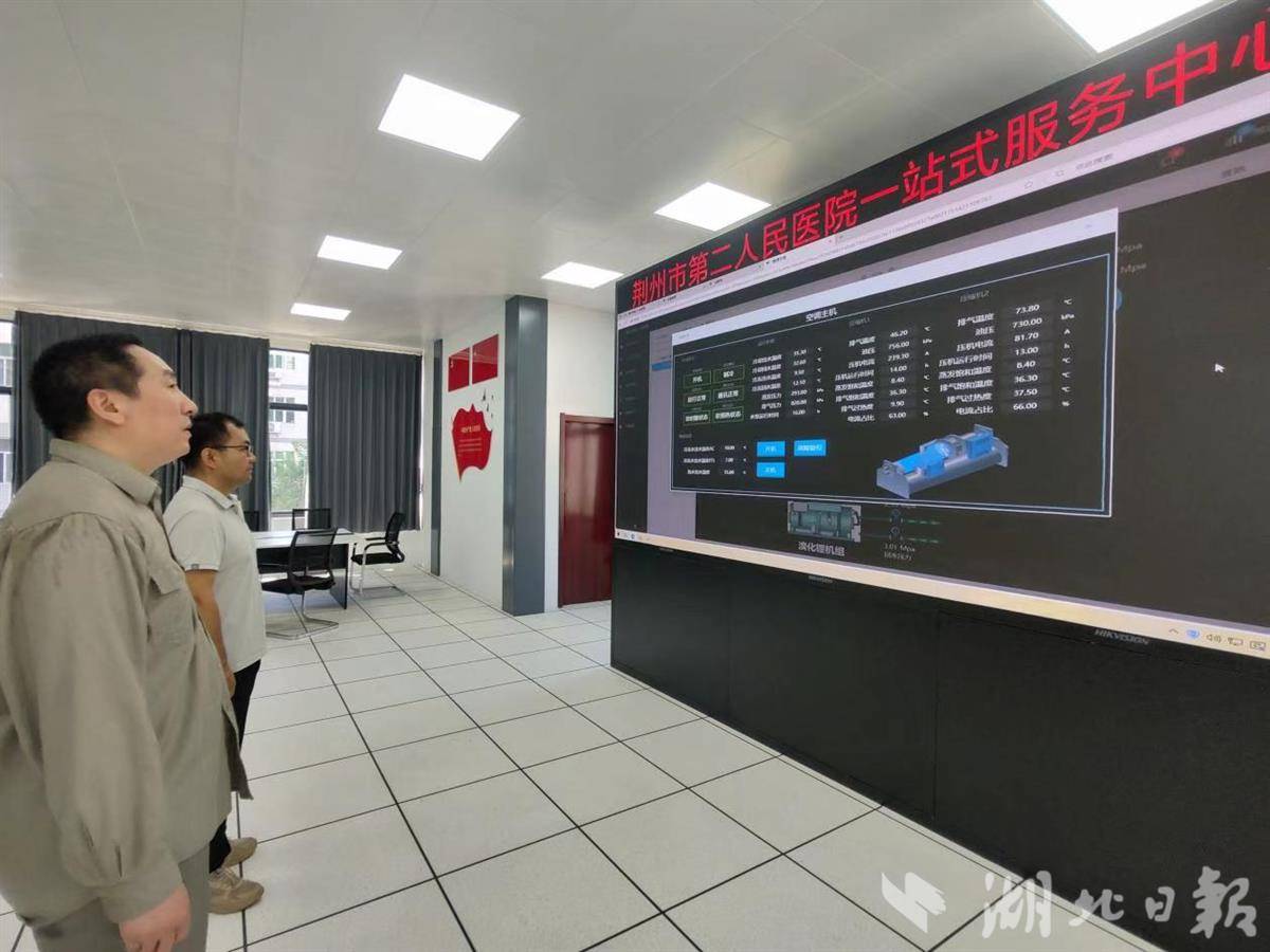 国网湖北电力员工通过智慧能源管理平台分析荆州市第二人民医院用能情况。(李鹏摄)