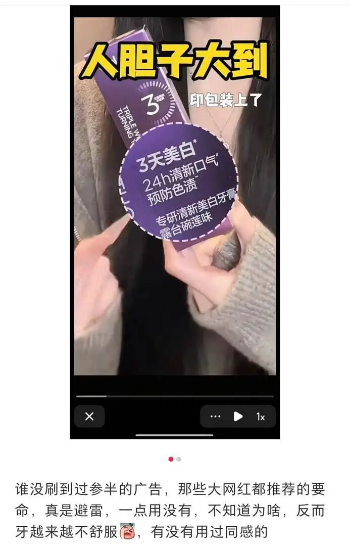 只是,尽管参半凭借差异化定位和强势营销成为行业黑马,但美白牙膏的效果争议,也暴露了品牌发展中的隐患。