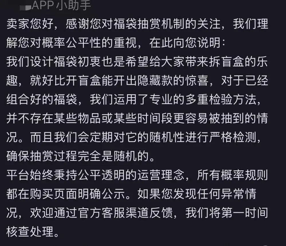 平台小助手曾回复称“抽赏过程完全是随机的”