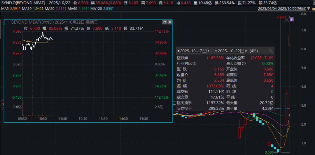 Beyond Meat于2019年登陆美股市场,曾在上市初期掀起狂热,股价一度高达239美元。如今股价虽远低于当年高点,但仍吸引散户炒作关注。