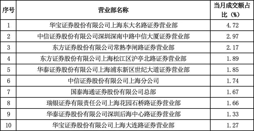 华宝东大名路营业部蝉联榜首