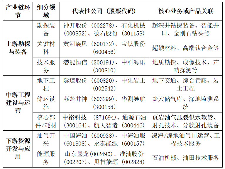 上游:技术与资源的“开路先锋”在上游领域,技术突破是核心。例如,全球首口万米科探井“深地塔科1井”深度达到10910米,标志着我国已具备打开地球深部资源宝库的技术钥匙。神开股份的175MPa智能井口装备打破了国际垄断,已服务于“深地塔科1井”。石化机械(000852)则实现了8000米以深井筒装备全覆盖,服务于中石化川渝天然气基地。