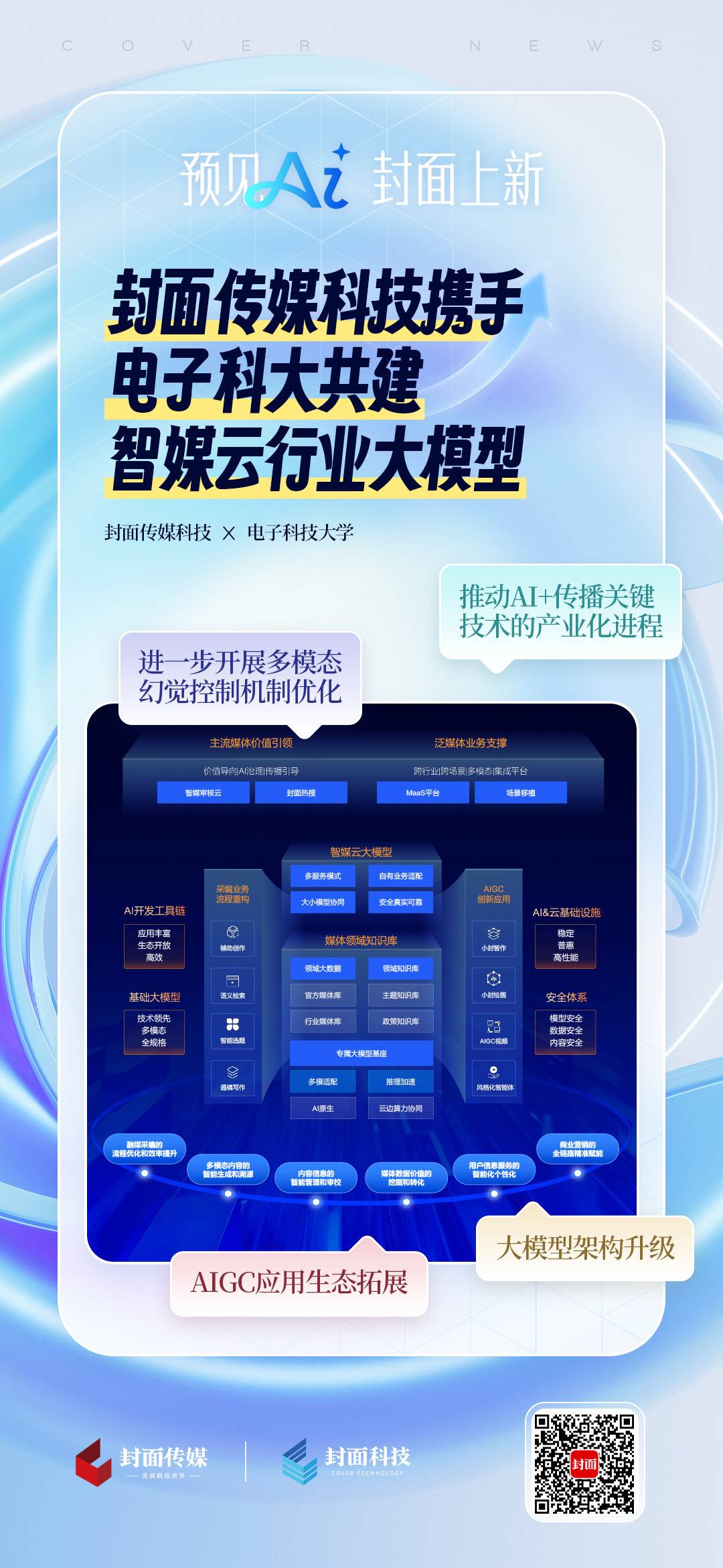 此外,封面传媒科技携手电子科技大学针对国内首个聚焦智慧传媒的行业垂类大模型——智媒云传媒大模型,启动全面技术再升级与应用生态拓展,旨在深化多模态幻觉控制、优化模型架构并拓宽AIGC应用边界,标志着该技术更加“好用、可信、高效”。