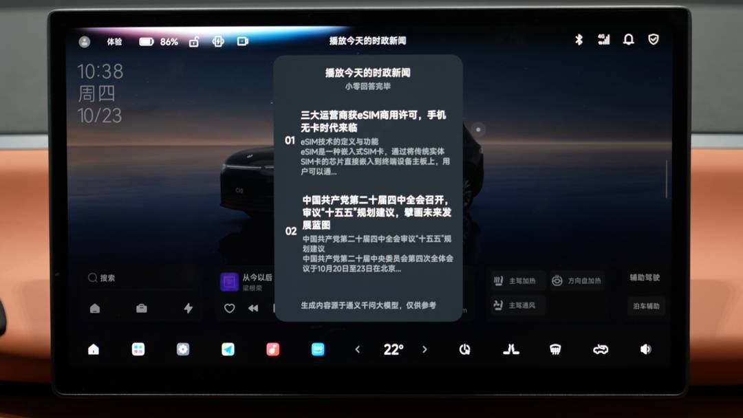 基于阿里云百炼大模型平台,整合了通义千问与DeepSeek多项模型能力,车载产品每天调用数十万条权威新闻作为训练语料,覆盖时政、财经、科技、体育、文化等12大主流频道。用户无需下载APP或连接手机,仅通过一句语音指令,就能在零跑C10、C11、C16、B10等车型的智能座舱中,实现“问热点、听摘要、看图文、聊观点”的全链路互动体验。