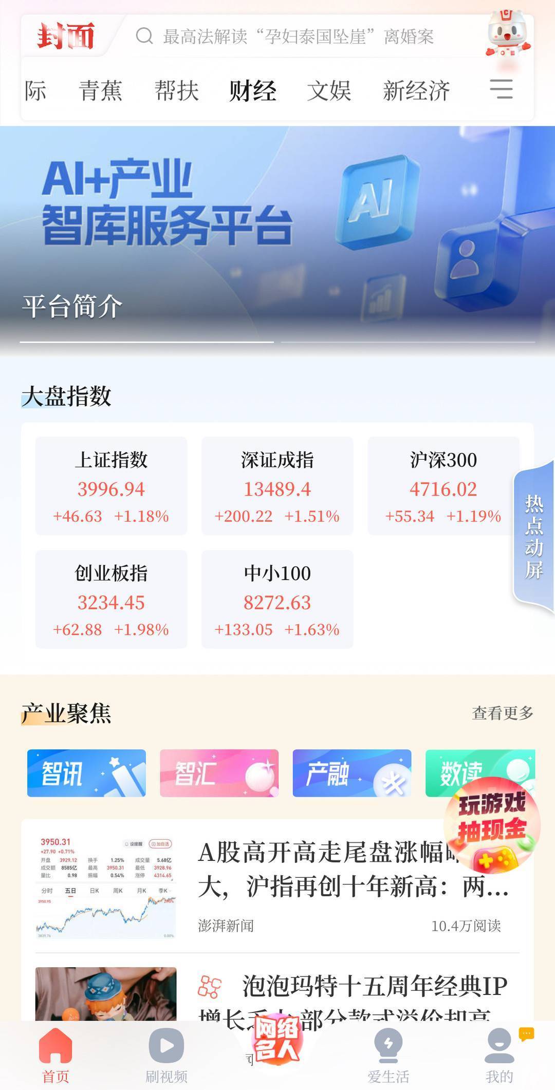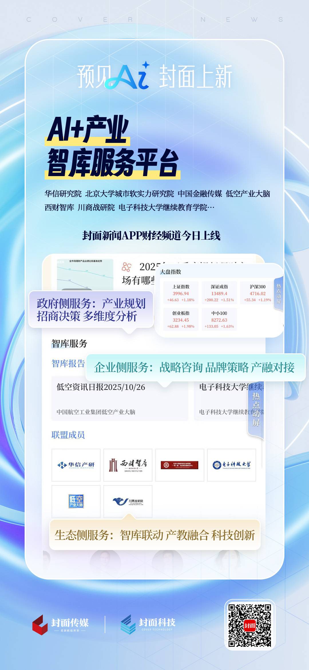 10月28日,封面传媒科技“AI+产业智库服务平台”在封面新闻APP财经频道正式上线。