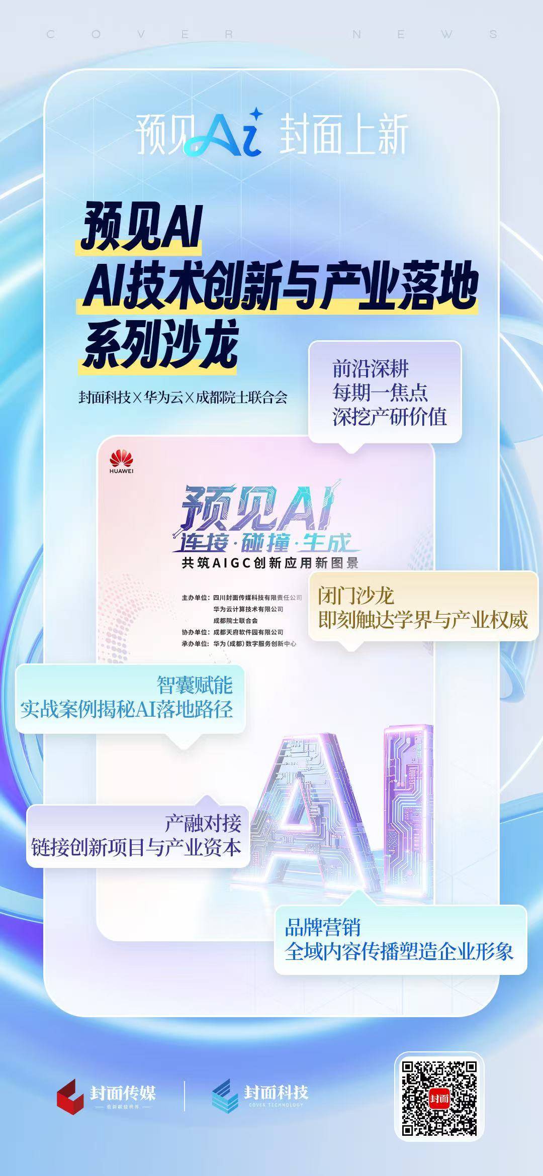 10月28日,封面传媒科技还联合华为云与成都院士联合会,成功举办“预见AI.AI技术创新与产业系列沙龙”首期活动——“连接碰撞生成——共筑AIGC创新应用新图景”主题沙龙。本次活动汇聚了众多专家学者与企业代表,围绕人工智能技术前沿与产业趋势,共话AIGC的创新应用与落地路径。未来,“预见AI”系列沙龙活动还将持续聚焦多元议题,依托“企业—媒体—学界”三方协同机制,链接产融两端,实现从“单次活动”到“产业生态”的跨越式升级。