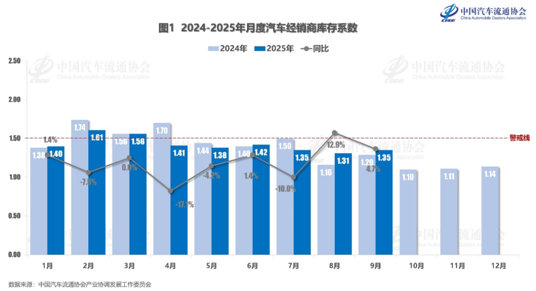 中国汽车流通协会:2025年9月汽车经销商库存系数为1.35