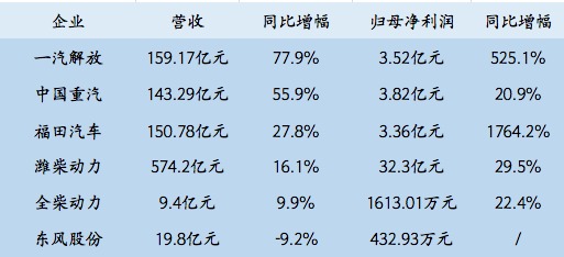 销量助推重卡企业第三季度业绩“爆表”。除了潍柴动力以外,一汽解放和福田汽车三季度营收均超过150亿元,归母净利润超过3亿元。中国重汽(000951)紧随其后,营收143.29亿元,归母净利润3.82亿元。