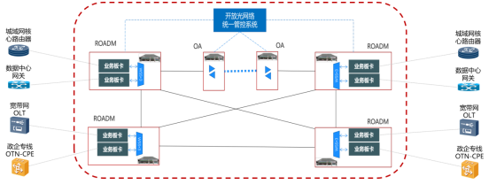 作为中讯院坚定践行创新驱动战略、深耕基础传输网络领域的结晶,白盒波分设备面向数据中心互联、城域ROADM组网等中长距、大颗粒业务高速直达传输场景。白盒波分设备具备单波800G超高速率传输能力,并支持MESH化组网、CDC-ROADM(无色、无方向、无竞争光交换)以及OMSP与WSON协同保护等功能,为网络提供了前所未有的带宽灵活性和可靠性。设备客户侧支持10GE-400GE速率的业务接入,满足城域网核心路由器、数据中心网关、OTN电交叉设备、智能城域网设备及OLT设备的互联和接入需求。