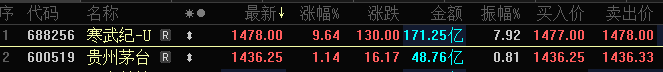11月6日,AI芯片龙头寒武纪-U(688256)股价大涨,午后一度涨近9.7%,最新价1478元/股,重新超越贵州茅台(600519),再登A股“股王”。