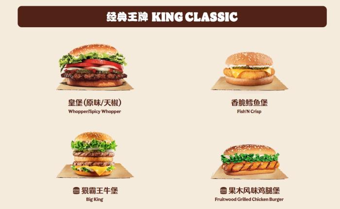 汉堡王中国部分产品。 截图自汉堡王中国。