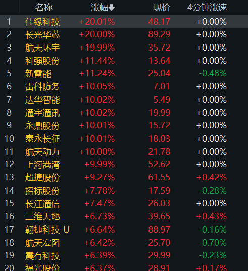 【大河财立方消息】11月25日,商业航天板块持续走强。截至午间收盘,佳缘科技(301117)、长光华芯、新雷能(300593)、雷科防务(002413)、航天环宇等涨停,翱捷科技-U、航天宏图等个股跟涨。