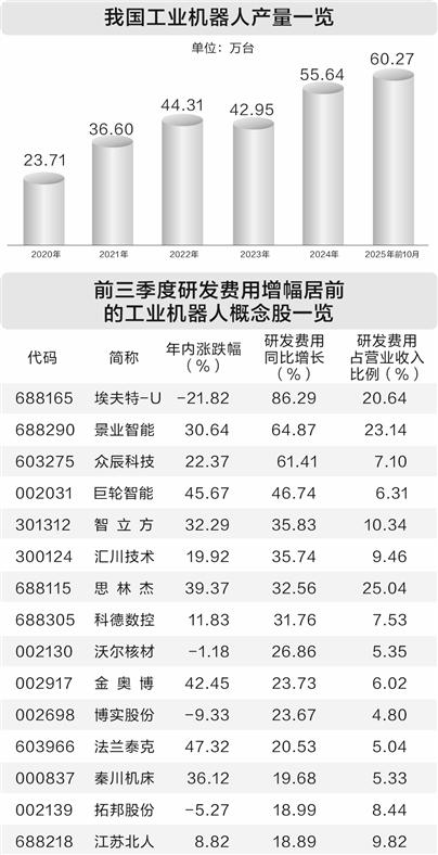 前三季度研发费用增幅居前的工业机器人概念股一览