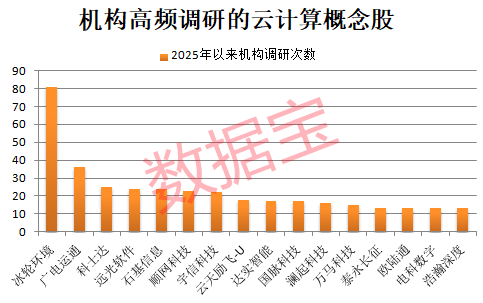 人民财讯11月26日电,证券时报·数据宝统计,截至11月26日,今年以来机构调研10次以上的云计算概念股有24只。机构调研频次最高的是冰轮环境(000811),该股年内累计获调研81次。其次是广电运通(002152)、科士达(002518)、石基信息(002153)、远光软件(002063)、顺网科技(300113)、宇信科技(300674)等。
