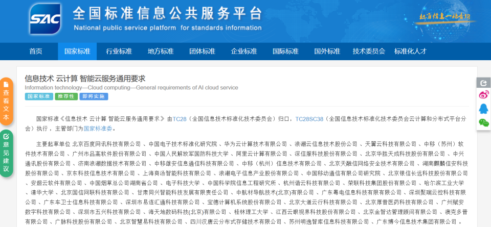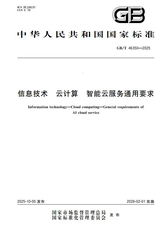 近日,国家市场监督管理总局、国家标准化管理委员会批准,由百度智能云联合中国电子技术标准化研究院牵头制定的首个智能云国家标准GB/T46350-2025《信息技术云计算智能云服务通用要求》正式发布,并将于2026年2月实施。