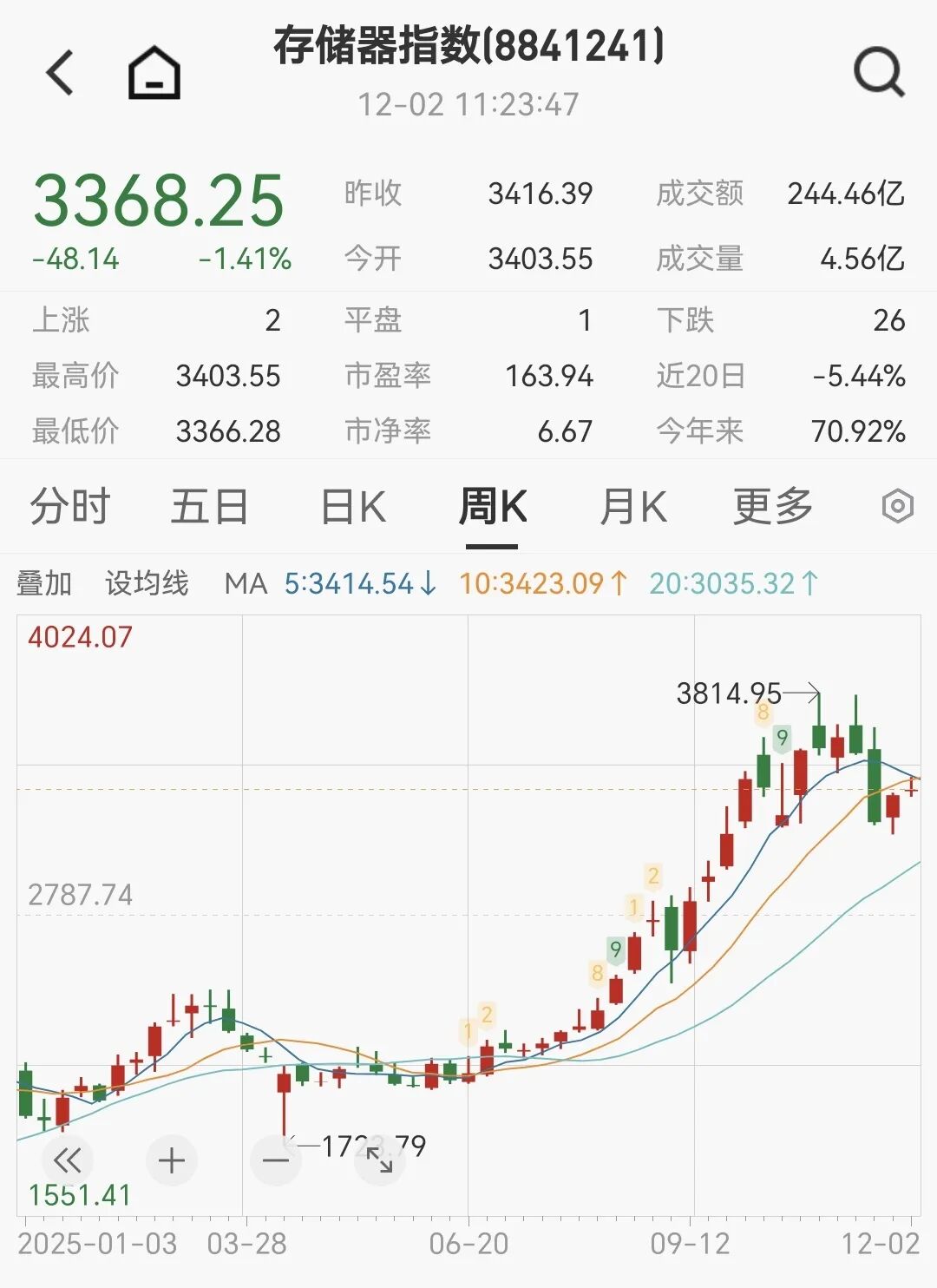 存储器指数(8841241.WI)年初至今走势图