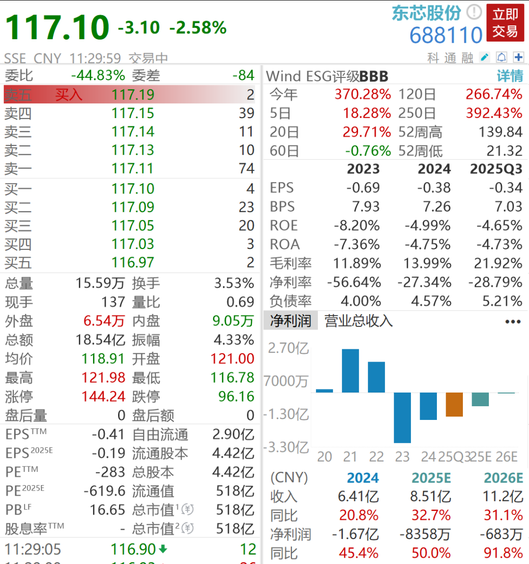 截至12月2日午盘,东芯股份年内涨幅370%,市值518亿