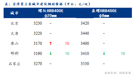 价格方面,今日京津冀主流建材市场价格持稳为主。