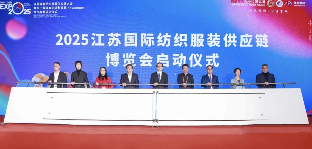 会上,周勇还与张海涛、省工信厅二级巡视员卢载贵、新华日报社副总编辑顾新东、江苏省服装协会会长龚慧娟等嘉宾一道,共同为2025江苏国际纺织服装供应链博览会按下启动键,标志着为期3天的博览会正式拉开帷幕。