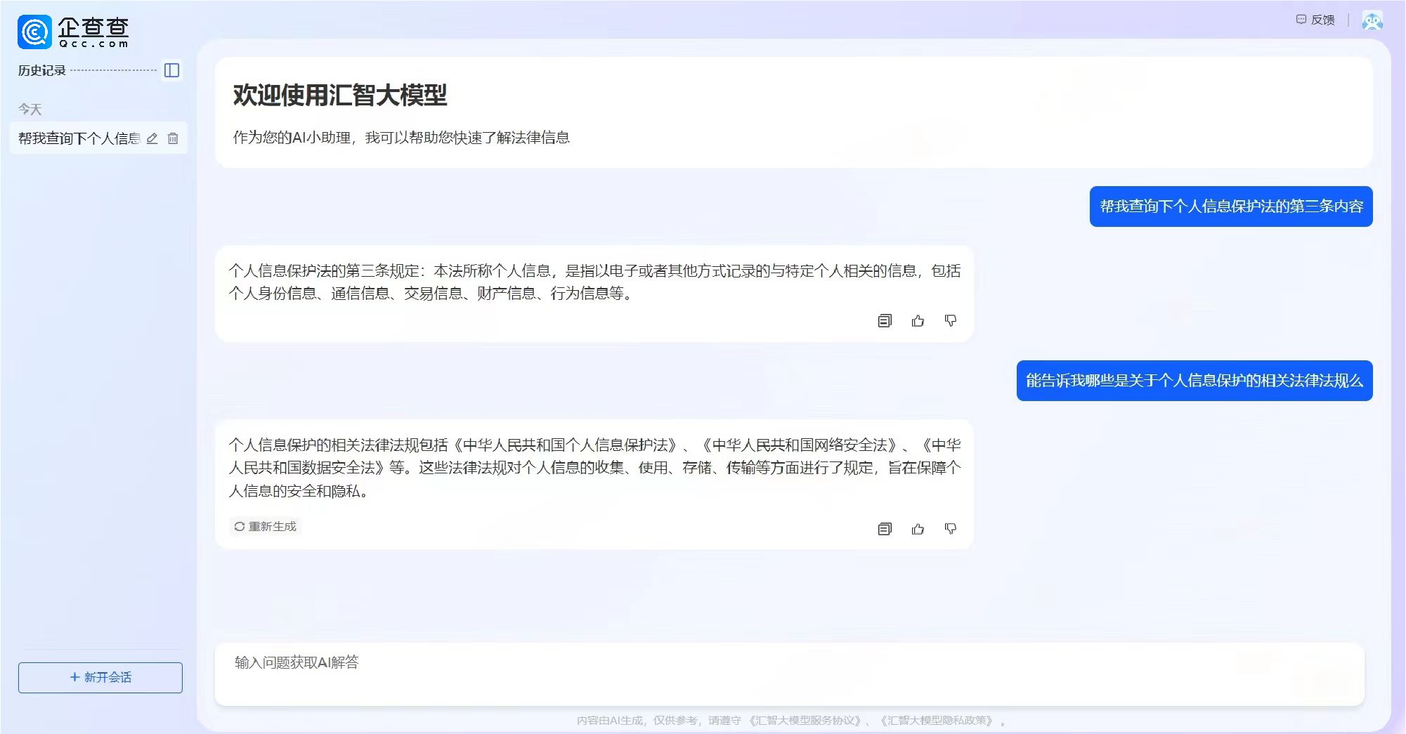随着“汇智”大模型的正式备案,企查查将进一步推动AI技术在数创领域的落地应用,为金融机构、律所、中小企业等专业群体提供更智能、安全、可信的服务支撑,助力我国可信人工智能发展迈上新台阶。