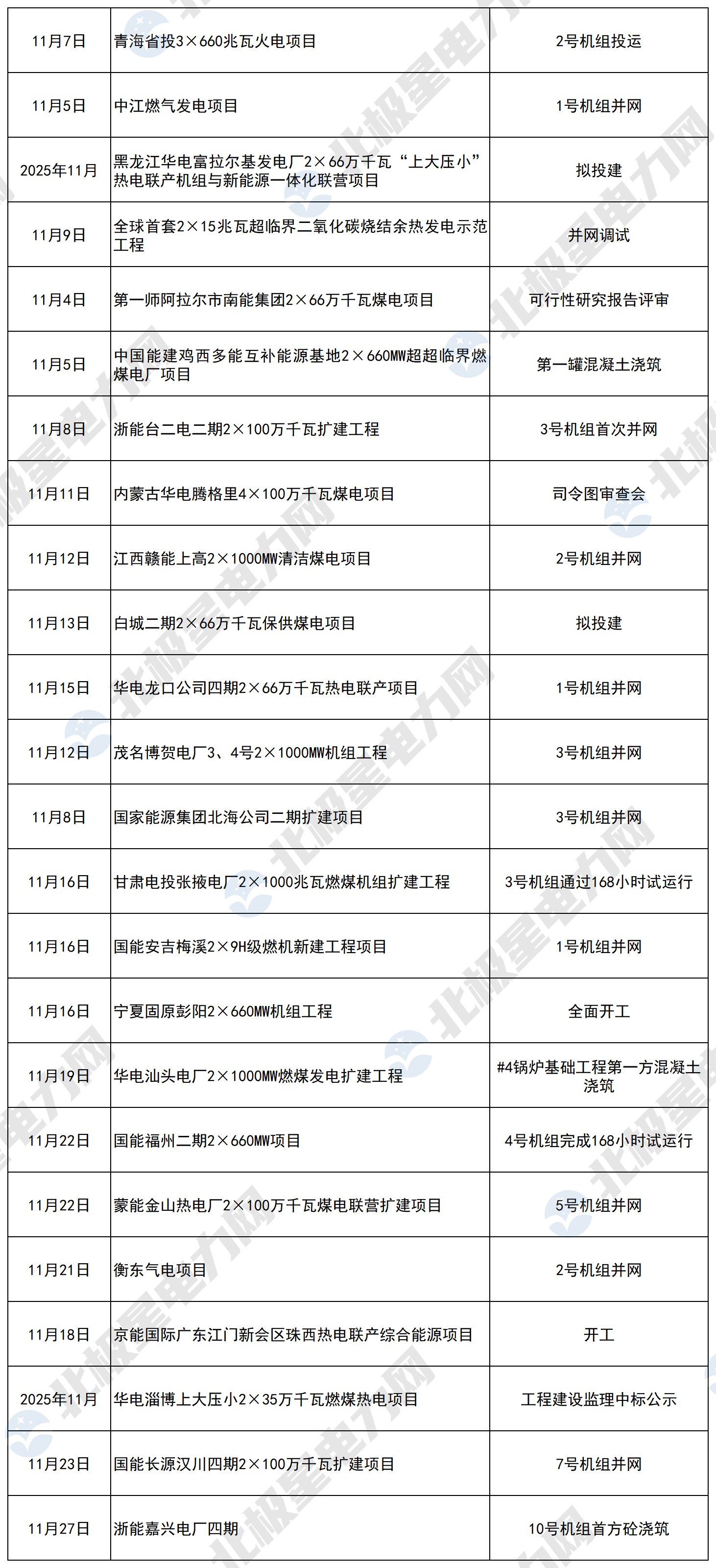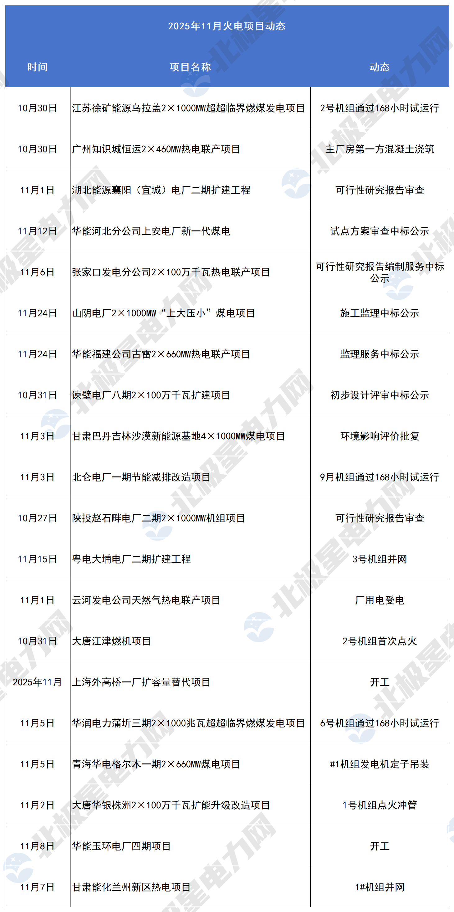 北极星电力网整理了2025年11月火电项目动态,44个项目取得重要进展,其中6个火电项目开工,18个火电项目并网、投产。