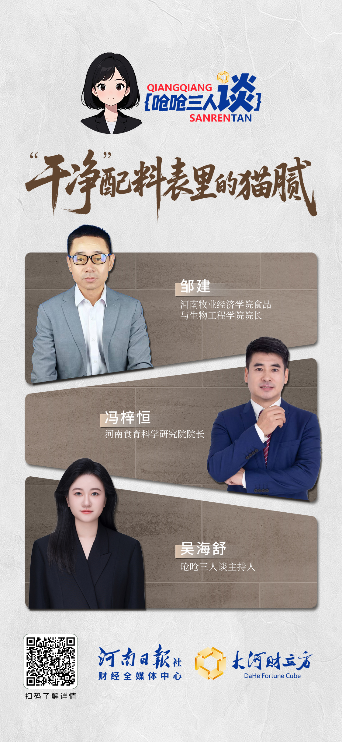 哪些是配料表造假重灾区?消费者应该如何避坑?大河财立方第二期“呛呛三人谈”,邀请国家农产品加工产业科技创新联盟专家委员会执行专家、河南牧业经济学院食品科学学院院长邹建,河南食育科学研究院院长、国家一级公共营养师冯梓恒一起,盘一盘“干净”配料表里的文字游戏。