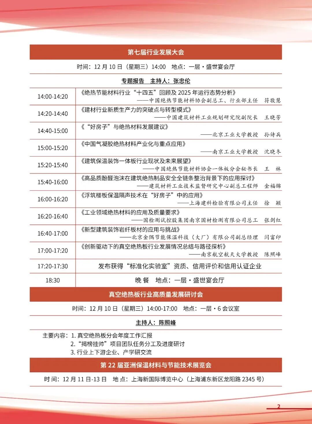2025年12月9日—10日,中国绝热节能材料协会在上海召开协会第八届会员代表大会暨第七届行业发展大会。同期,举办第22届亚洲保温材料与节能技术展览会及专题分论坛等活动。