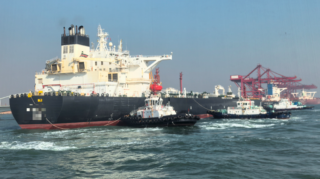 抵达现场后,“日港拖1”轮船长王军海通过与兄弟单位细致交流,熟悉现场情况、助泊操作经验。最终,克服寒冷气温、复杂海况等影响,两港区拖轮兄弟紧密配合、并肩作战,成功将大型油轮安全、平稳地护送靠泊,圆满完成生产支援任务。