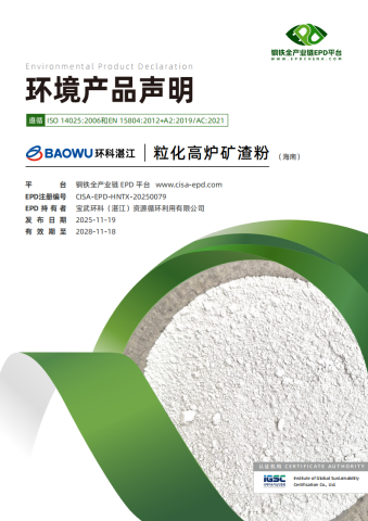宝武环科:宝武环科(湛江、海南)粒化高炉矿渣粉,以工业固废为原料,通过先进立磨工艺打造高性能混凝土掺合料。作为国内矿渣微粉领域首个经第三方独立验证的全生命周期环境声明,这份EPD填补了国内矿渣微粉领域环境绩效声明的空白,标志着矿渣微粉行业绿色低碳数据量化与披露迈入规范化发展新阶段,实现了行业在绿色产品溯源与价值锚定上“从0到1”的突破。