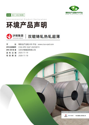 江苏沙钢:沙钢集团以创新引领未来,此次在钢铁全产业链EPD平台发布热轧盘条与双辊铸轧超薄钢带两大核心产品。热轧盘条凭借高强度、高塑性、耐腐蚀等特性,深度服务汽车、桥梁、船舶等领域;超薄钢带则以0.6mm-2.0mm极致厚度,赋能汽车轻量化、IT设备及绿色建筑。两大产品均依托集团“绿色低碳”战略,实现清洁运输占比超80%,并通过全流程废钢循环体系推动资源再生。