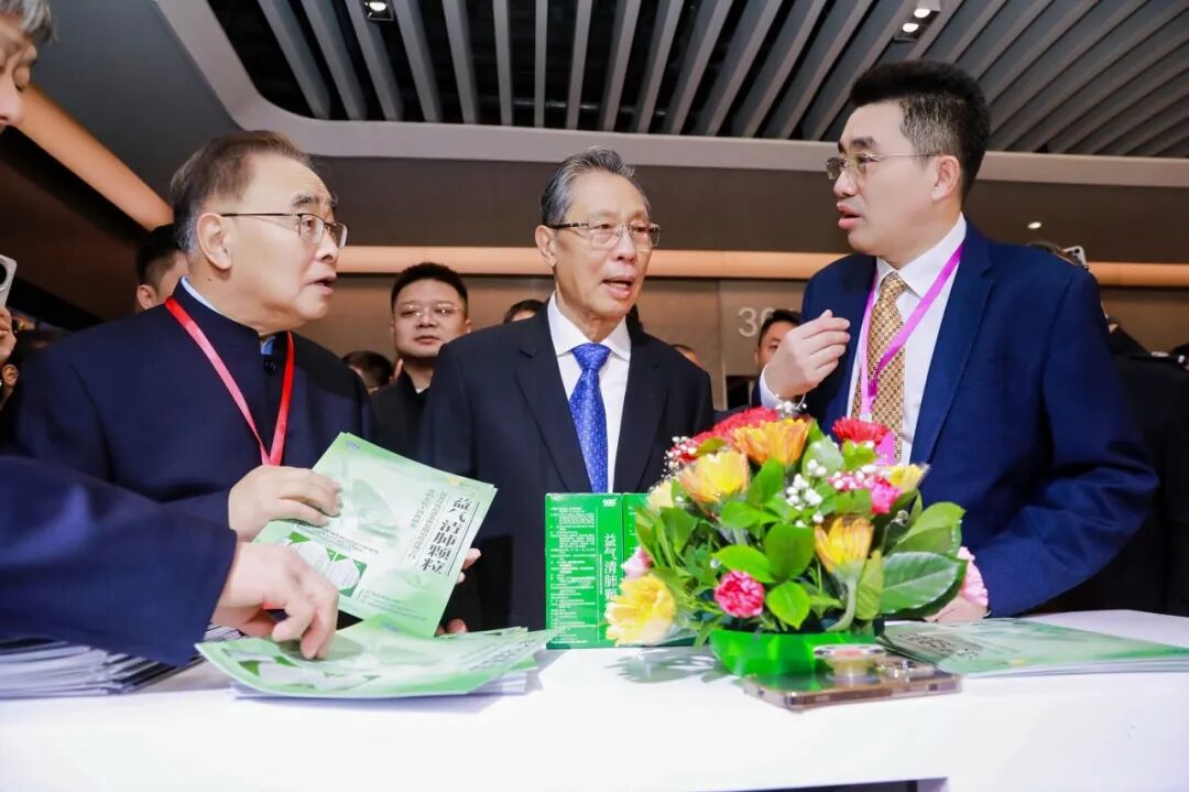 益气清肺颗粒的上市引发社会与行业的广泛关注。会议期间,华润三九董事长邱华伟陪同钟南山院士、张伯礼院士一行参观华润三九展台,了解益气清肺颗粒。参观过程中,钟南山院士与张伯礼院士详细了解了企业在恢复期科研与临床布局方面的最新进展。两位院士对产品在恢复期治疗中的创新价值给予高度关注,并肯定了其在推动恢复期医学发展中的潜在作用。