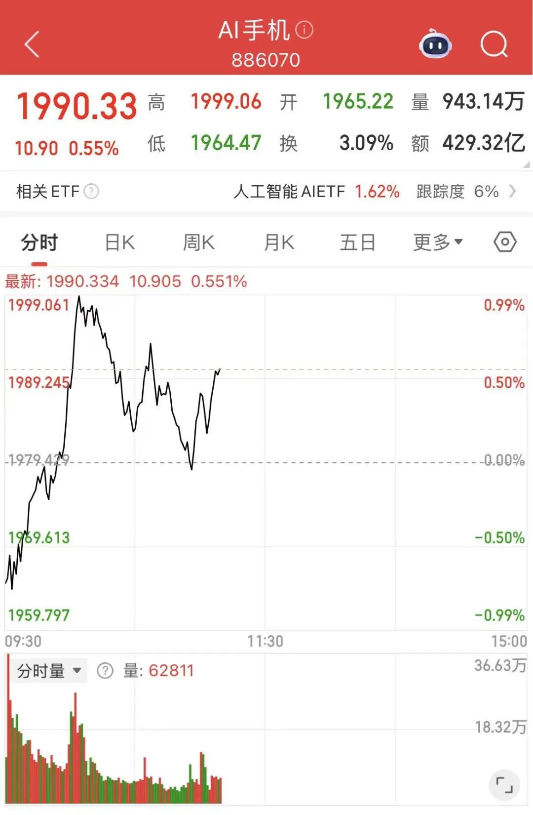 12月9日,AI手机概念早盘迅速拉升,福蓉科技(603327)触及涨停,思泉新材(301489)、鹏鼎控股(002938)等个股跟涨。同时,电广传媒(000917)、奥飞数据(300738)等智谱AI概念也陆续上扬。