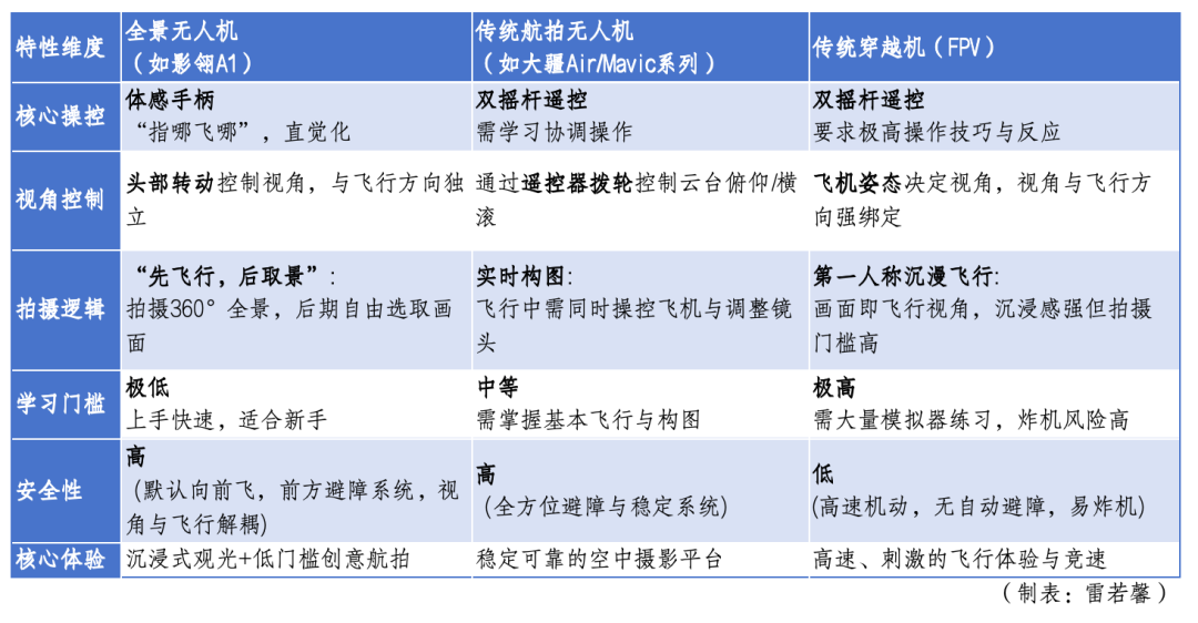 传统无人机市场已高度分化:追求画质与稳定的航拍机、追求沉浸与速度的FPV穿越机。二者分处平行赛道,界限清晰。