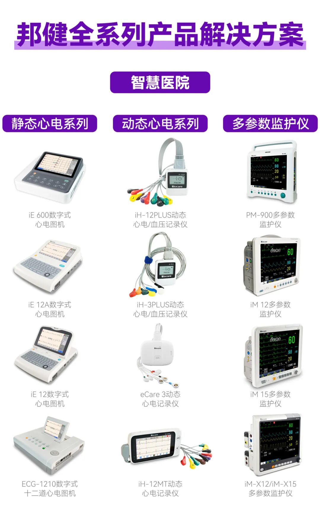在医疗设备供给端,邦健精心构建多维度基层医疗设备矩阵。产品矩阵涵盖数字式心电图机、动态心电记录仪、多参数监护仪及胎监仪等核心设备,全面覆盖院内外心脏监护场景,为基层医疗卫生人员提供高效助力,切实提升服务效率与诊疗精准度。
