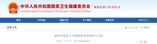 近日,国家卫生健康委发布《2024年我国卫生健康事业发展统计公报》。《公报》显示,2024年末,全国中医类医疗卫生机构总数103704个,全国中医药卫生人员总数115.9万人,全国中医类医疗卫生机构总诊疗人次16.8亿。