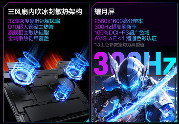 屏幕配置针对游戏与创作双重优化:16 英寸 2560×1600 分辨率,300Hz 超高刷新率(高于同价位多数机型的 240Hz),可消除高速移动画面的拖影,适合 FPS 类游戏;100% DCI-P3 广色域与 500 尼特亮度,能精准还原游戏色彩与专业设计文件的色彩细节,满足视频剪辑、平面设计等需求。