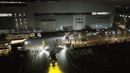 满载着太重装备的运输车队深夜启程