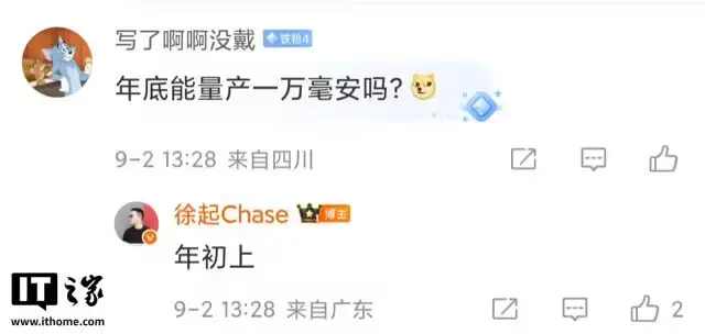 另一家则是真我,在去年9月,曾有网友询问徐起“年底能量产一万毫安吗”。
