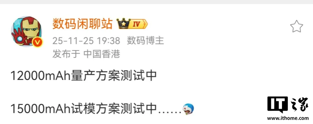微博博主曾明示,12000mAh量产方案测试中,15000mAh试模方案测试中......