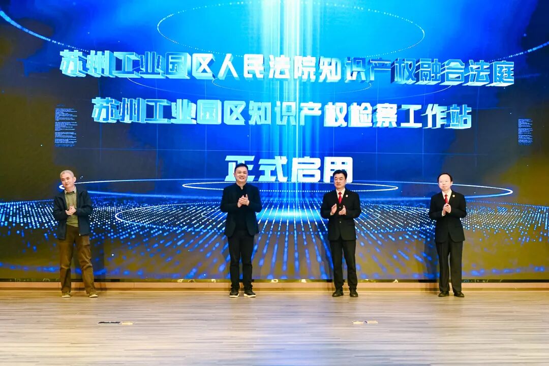 现场还举行了苏州工业园区人民法院知识产权融合法庭和苏州工业园区知识产权检察工作站启用仪式,以及园区“知产护航”行动启动仪式。彰显了园区在服务企业知识产权工作过程中,不仅提供坚实的司法后盾,更是主动作为,打造“提前预诊+现场问诊+定期回访”等专业服务。