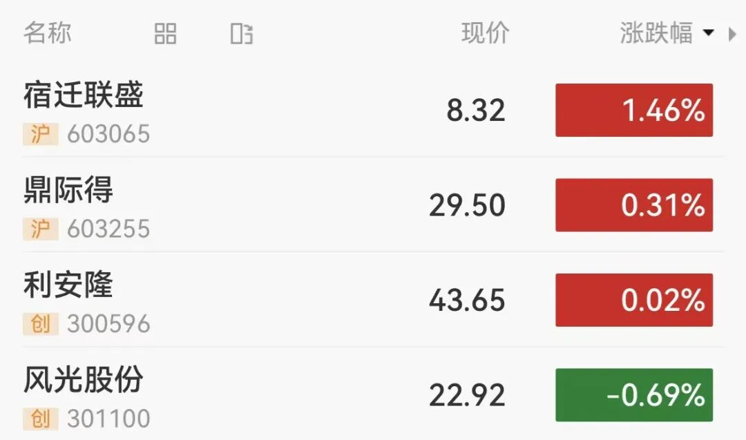 不过二级市场反应较为平淡,截至12月19日收盘,宿迁联盛涨1.46%,鼎际得涨0.31%,利安隆涨0.02%,风光股份跌0.69%。