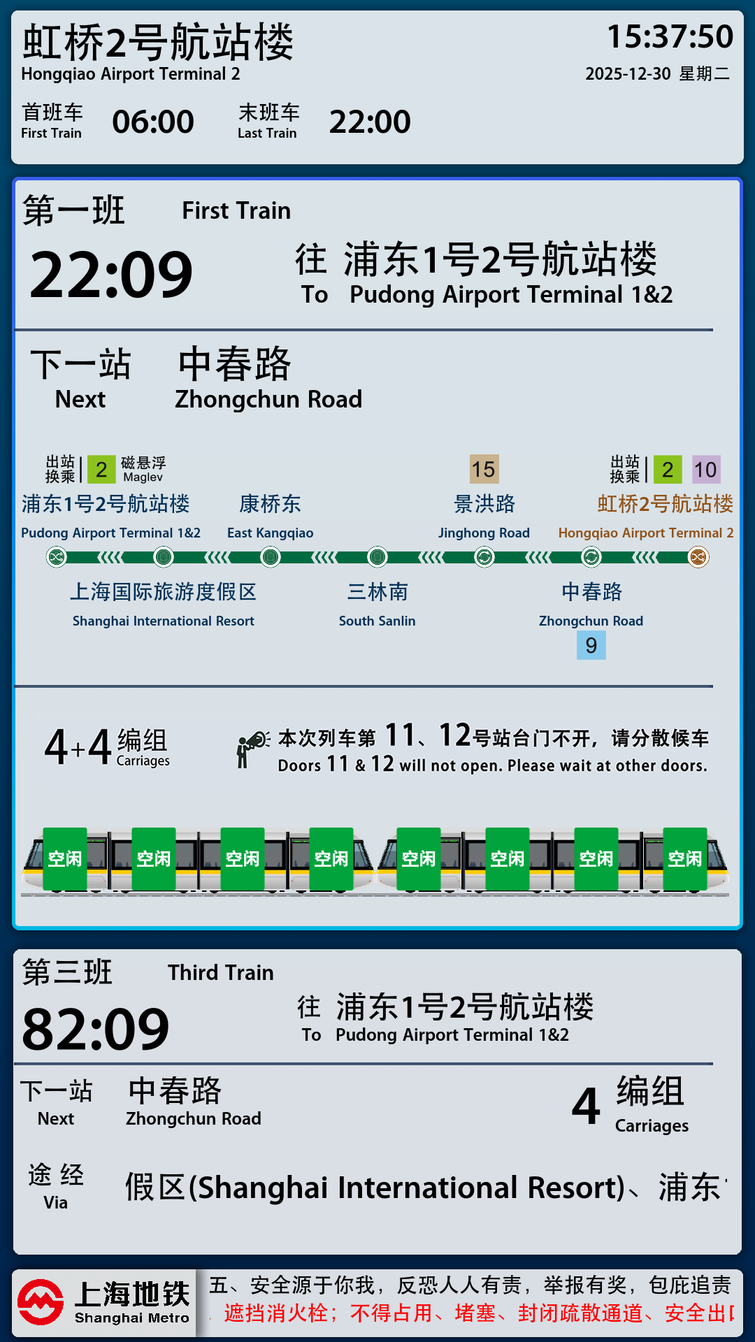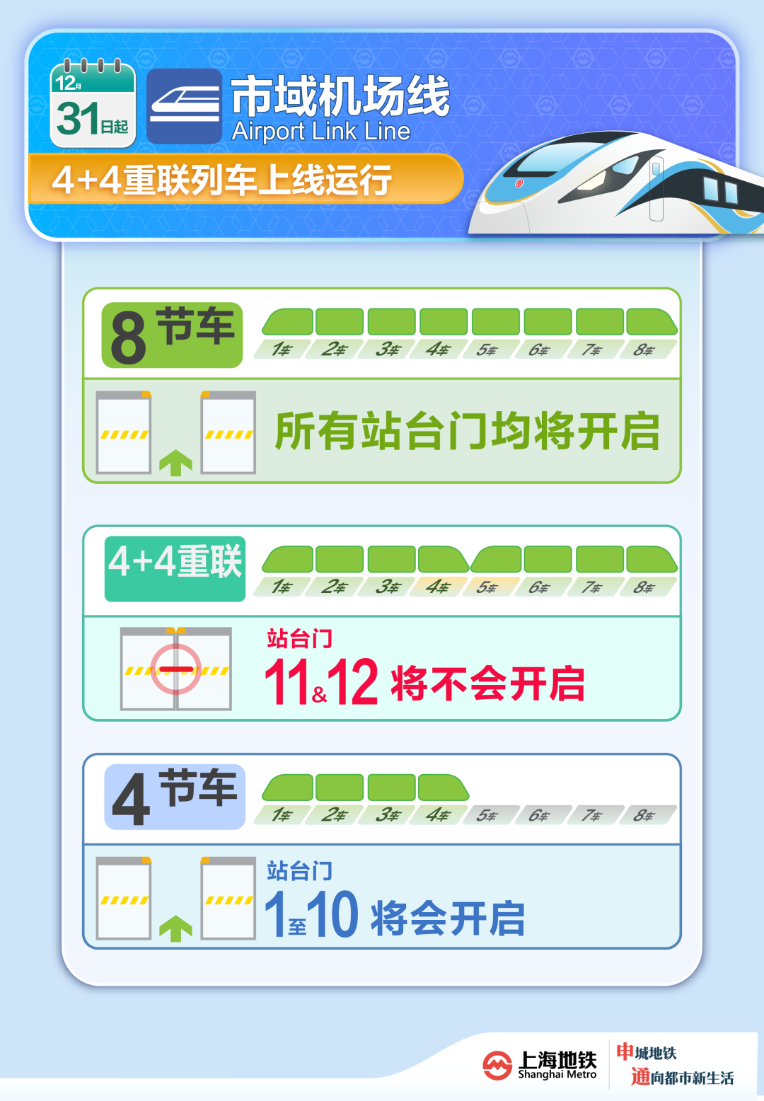 【交通】明日起市域机场线多种编组列车混跑!注意“4+4”重联编组停站11、12号站台门不开